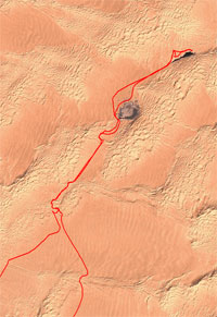 | On passe Sebha, où l’on aperçoit les reste d’un fortin, trace de l’occupation italienne. Bivouac à