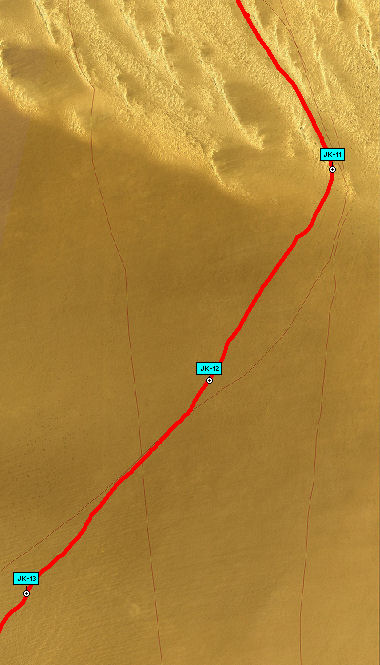 JK-11 à JK-12: 35,2 km JK-11, Sortie de la GSS - derniére dune - cap sud-ouest,